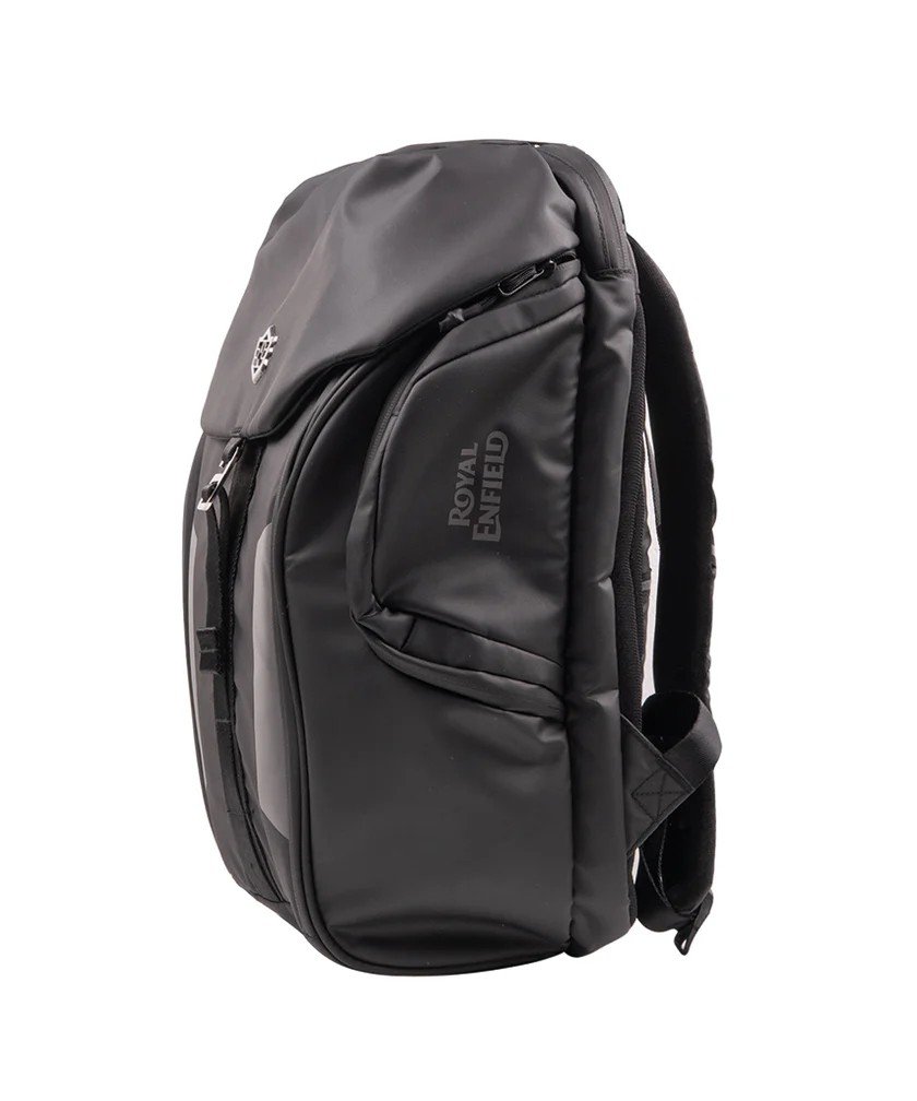 Scopri il perfetto equilibrio tra stile, praticità e resistenza con lo zaino Royal Enfield semirigido nero. Progettato per i motociclisti che cercano un accessorio di qualità, questo zaino è l'ideale per le tue avventure su strada, sia in città che in viaggio.